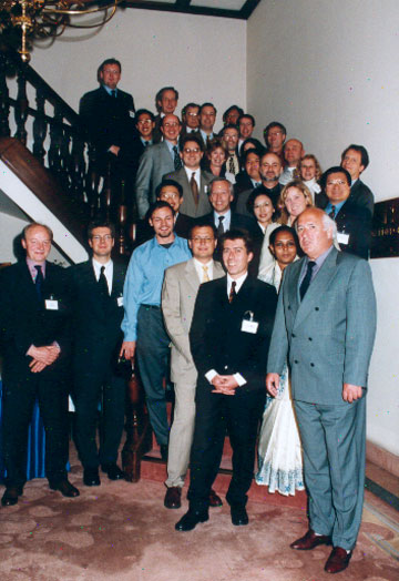 ![]() Links on names lead to CVs. Participants: North America Europe Asia Participants - North America Ms. Robbie Oxnard Bent, Director, The Posse Foundation, New York Prof. Dr. David Brin, astrophysicist, author of The Transparent Society: Will Technology Force Us to Choose Between Privacy and Freedom?, award-winning science fiction author Dr. Moira Gunn, PBS Technology Radio host, host of weekly nationally-syndicated radio show (Tech Nation ... Americans and Technology), former NASA computer scientist Mr. Douglas Merrill, Senior Research Fellow, Research Group on the Global Future, Center for Applied Policy Research Ms. Jude Milhon, former senior editor of Mondo 2000, author of How to Mutate and Take Over the World (book on privacy, identity and alliances in a completely mediated society) Mr. Stephen O'Connor, Group Publisher, Budapest, Prague and Warsaw Business Journals Dr. Gregory Stock, Director, Program on Science, Technology and Society, University of California, Los Angeles Ms. Karen J. West, legal counsel for Amoco Canada, Calgary, Canada Mr. William Wechsler, Director for Global Issues and Multilateral Affairs, National Security Council, The White House Participants - Europe Dr. Richard Barbrook, Hypermedia Research Centre, University of Westminster, London, UK Dr. Jon Bingen, Europa-Programmet, Oslo, Norway Dr. Christof Erhart, BOL International, Zurich, Switzerland Dr. Hans Fleisch, German World Population Foundation, Hannover, Germany Mr. Joerg Frank, Painter, Cologne, Germany Mr. Walter Homolka, Rabbi, Hamburg, Germany Prof. Dr.-Ing. Vollrath Hopp, University of Rostock, Germany Mr. Josef Janning, Deputy Director, Center for Applied Policy Research, Munich, Germany Dipl. Ing. Petr Lebeda, Research Fellow, Institute of International Relations, Prague, Czech Republic Mr. Justus Mische, Member of the Board of Trustees, Aventis Foundation, Frankfurt, Germany Mr. Jürgen Turek, Director, Research Group on the Global Future, Center for Applied Policy Research, Munich, Germany Mr. Markus Vorbeck, Senior Research Fellow, Research Group on the Global Future, Center for Applied Policy Research, Munich, Germany Mr. Joop de Vries, Executive Director, RISC Futures, Paris, France Mr. Arnd Wagner, Managing Director, Aventis Foundation, Frankfurt, Germany Prof. Dr. Dr.h.c. Werner Weidenfeld, Director, Center for Applied Policy Research, Munich, Germany ![]() Prof. Dr. Atsuko Onuki, Hoon Chang, Rafael C. Lopa, Mr. Jeong-Ho Roh. Participants - Asia Mr. Hoon Chang, Kim Dae-Jung Peace Foundation, Seoul, South Korea Mr. Kriengsak Chareonwongsak, Executive Director, Institute of Future Studies for Development, Bangkok, Thailand Ms. Subha De, Painter, Fathegunj Uadodara, India Mr. Yoshimasa Hayashi, Lawyer and Politician, Member of Japan's House of Councillors, Tokyo, Japan Mr. Rafael C. Lopa, Executive Director Benigno S. Aquino Foundation, Manila, Philippines Prof. Dr. Atsuko Onuki, Literature Professor, Gakushuin University, Japan Mr. Jeong-Ho Roh, Center for Korean Legal Studies, Columbia University, New York, USA |